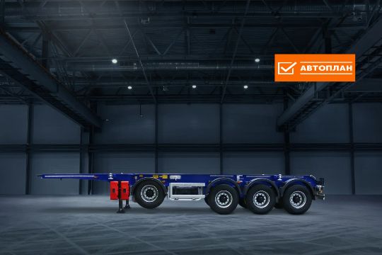 Полeприцеп разработан с учетом специфики танк‑контейнеров: увеличенного веса (включая массу груза), особых требований к устойчивости и необходимости минимизировать риски при транспортировке опасных веществ.